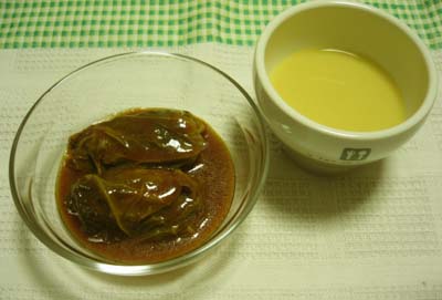 ロールキャベツとコーンスープ美味しい。