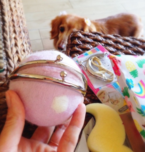 ピノちゃんはボールと勘違いしてないかい?がま口の丸さが気になっている様子だね。 :emojiface_bee: